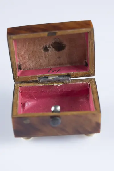 Brukaren kommer från den österrikiska släkten Geymüller. Modern hette som ogift Barbara Schmidt (1779-1835) och fadern Johann Heinrich (1754-1824). Tillsammans med sin bror grundade fadern bankirfirman Geymüller och Co 1805, som under 1800-talets första decennier gjorde lysande affärer. Firman blev en av de mest betydande i Europa, familjens förmögenhet ökade betydligt och en mängd egendomar och fastigheter förvärvades. Familjen skaffade sig goda förbindelser med det österrikiska kejsarhuset och upphöjdes så småningom i adligt stånd. Familjens äldsta dotter Barbara, kallad Betty (brukaren), gifte sig 1825 med Sveriges chargé d´affaire i Wien, Ulrik Croneborg (1796-1844) född i Nyköping, som senare blev hovmarsalk. Han stod bland annat nära Karl XIV Johan. När Bettys far dog, testamenterades hans stora förmögenhet till Betty och hennes syskon. För den arvslott som tillfallit Betty, köpte hennes make in Älvsbacka bruk i Värmland 1827, och lämnade sin tjänst som chargé d´affaire. Bruket som var grundat 1642, var vid tiden för köpet ett av det mest betydande landskapet. Östanås herrgård, byggd 1792, köptes in som bostad. Enligt hörsägen betalades den stora bruksegendomen kontant i gulddukater som medförts i en kappsäck från Österrike. Herrgården inreddes med tjusig och dyrbar inredning, och en värdefull konstsamling där verk av både svenska och utländska berömda konstnärer ingick, köptes in under årens lopp. Denna splittrades dock på auktioner i Stockholm och Paris under 1800-talets andra hälft. Östanås blev Bettys hemvist under återstoden av hennes liv, även sedan hennes man dog 48 år gammal 1844. Tillsammans med sin man fick hon sönerna Wilhelm (1826-1909) och Hjalmar (1830-1876). Den äldre bosatte sig efter faderns död på Östanås och tog över Älvsbacka bruk. Han gifte sig 1851 med Marie von Berg från Sachsen (1831-1925). Ytterligare ett betydande arv fick Betty av sin ingifta faster när denna dog 1856. Samma år tog hon hand om sin systerdotter Louise (1844-1878) som blev föräldralös vid tolv års ålder. Denna gifte sig 1865 på Östanås och bosatte sig sedan i Västergötland. Betty gjorde många resor till Stockholm, Uppsala och även till Wien. I Karlstad hade hon en våning och i staden umgicks hon bland annat med landshövdingen och biskopen. Det svenska språket lärde hon sig perfekt. Hon var musikaliskt begåvad, var god sångerska och pianist, samt hade konstnärlig talang som målarinna. Med ett trädgårdsintresse anlade hon park och trädgårdsanläggningar på Östanås. Efter sig har hon lämnat en stor samling brev, de flesta ställda till sonen Hjalmar. Betty dog den 22 februari 1866 och vilar bredvid sin make på Älvsbacka kyrkogård. Sonen Wilhelm omvandlade 1875 tillsammans med sin bror Hjalmar, Älvsbacka bruk till "Elfsbacka Aktiebolag". Bruksrörelsen gick i konkurs 1893 och egendomen såldes. Skåpet inv. nr 34611 lät Betty göra, troligtvis i Karlstad, för att samla minnessaker i.