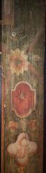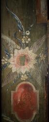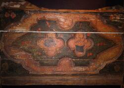 23/2 En del malte Bord, dels rosemalte, dels med Billeder, fra en gammel Stue fra Grimsgard i Nes, der forlanger nedreven (Professor (Johan) Meyer fra Trondhjem har under et Nærvær her for en del tid siden uttalt om disse Gjenstande hadde betydelig Interesse og burde erverves av Museet.