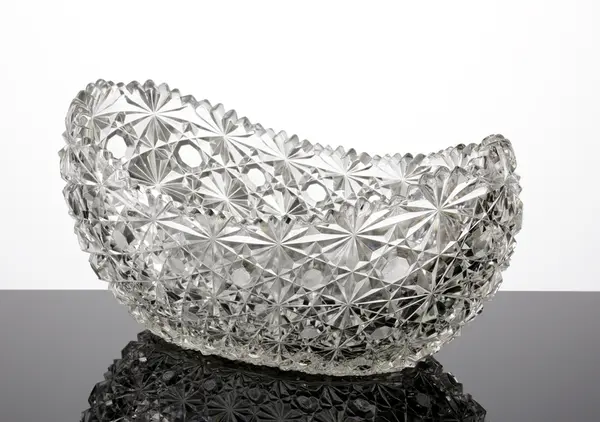 - Pressade glasvaror tillverkades på de flesta servisglasbruk. Vissa typer gjordes för att efterlikna de dyra slipade glasen som framför allt borgarklassen dekorerade sina hem med. Av den anledningen kom typen att kallas "fattigmenskristall". Denna skål är ett ypperligt exempel på ett sådant föremål.