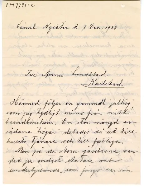 Proveniens - Annat: December 7, 1928 (Brevdatering)