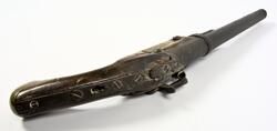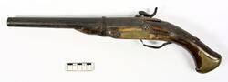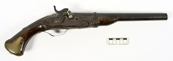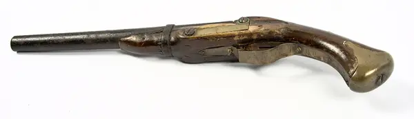 Troligtvis är pistolen ett militärt vapen från 1800-talets första hälft och har ursprungligen varit försedd med en flintlåsmekanism. Mekanismen har vid något tillfälle bytts ut mot ett modernare slaglås.