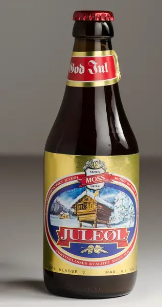 Etikett og innhold i flaske.