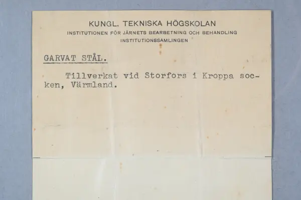 - Detta föremål ingår i en samling prover från KTH som togs emot 1963. Samlingen består mest av metallprover men det finns även annat material.
