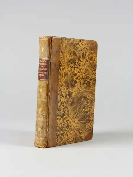 about Bok med helfranskt band. Försättsida med tryck och titel. "M. Peter Högströms missionar und pastor zu Gelliware. Beschreibung des der Crone Schweden gehörenden Lapplandes. nebst Arwid Ehrenmalms Reise durch West-Nordland nach der Lappmark Asehle ... Copenhagen und Leipzig, Verlegts Gabriel Christian Rothe. 1748".