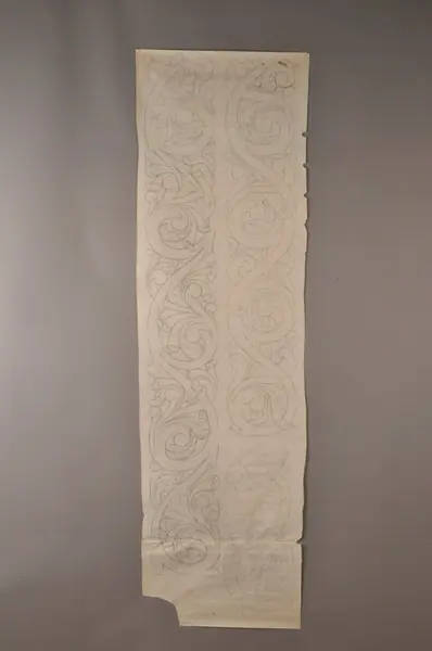 - - sommaren 1898 sette Olaf opp loftet på Nordigard Opsund, dette er mønstret på stolpane han skar ut til bygget.