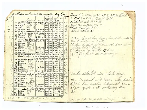 Dagböckerna innehåller stora mängder uppgifter om väder och jordbruk men även omvärldsbevakning.