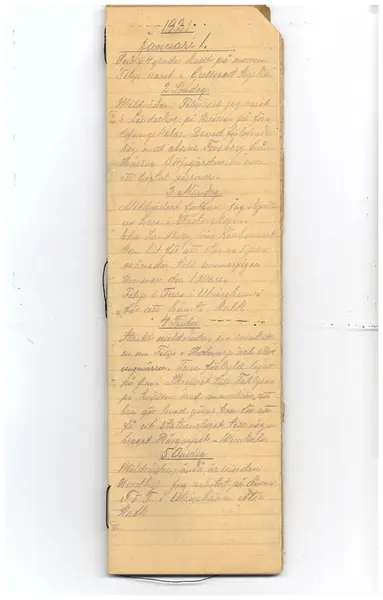 Carl Gustaf Jacobson, född den 16/6 1847 och död den 29/11 1930, var lantbrukare och snickare, nämndeman och landstingsman, auktions- och bouppteckningsförrättare. Den dagbok han skrev är så gott som daglig och berör dagens händelser, väderlek och temperatur. Fram till 1909 är anteckningarna förda i en interfolierad almanack, därefter i separata dagböcker bestående av hopvikta skrivpapper. C G Jacobson gifte sig 1870, vid samma tid som han övertog gården efter sin far. År 1904 arrenderade hans två sönder lantbruket och C G Jacobsson övergick alt mer till snickeriarbete, bland annat tillverkade han likkistor för försäljning. Mot slutet av sin levnad lämnade han uppgifter till Nordiska museet angående lantbruk och bondekultur i trakten. Nordiska museet besökte även Jacobsons gård och gjorde anteckningar samt ritade av föremål från det gårdsmuseum som C G Jacobson hopsamlat. (från Svenska bondedagböcker, ett nationalregister av Bo Larsson)
