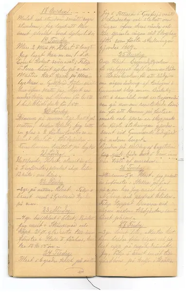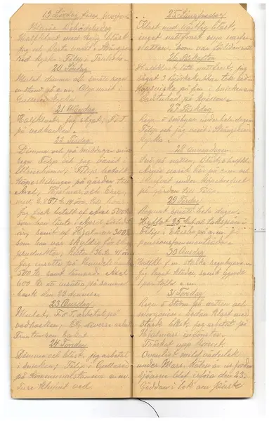 Dagböckerna innehåller stora mängder uppgifter om väder och jordbruk men även omvärldsbevakning.