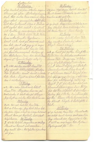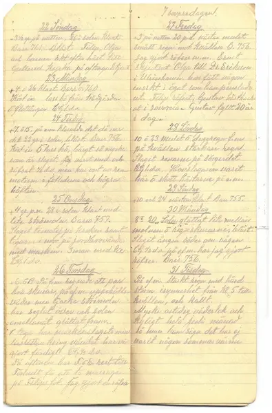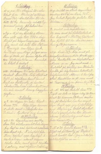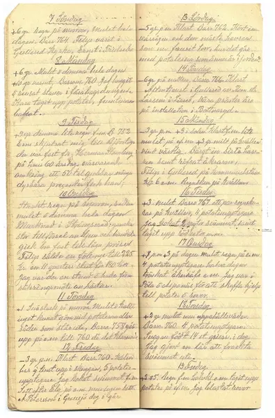 Dagböckerna innehåller stora mängder uppgifter om väder och jordbruk men även omvärldsbevakning.
