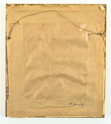 Avsedd att användas som gratulationstavla, troligen födelsedagstavla. Gåva av Anna och Karin Ekstrand, Aschebergsgatan 35, Göteborg. Till samlingarna: År 1956. Papperet är något malätet."