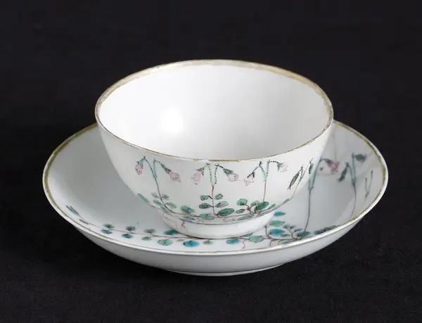 Denna tekopp tillhör den andra och senare versionen av servisen, där blommorna fick en mer korrekt rosa färg, samt att bladen gjordes flikiga. Den första varianten som levererades till Carl von Linné hade alldeles för röd nyans och bladen var felaktigt runda (källa Östasiatiska museet, artikelnummer TEMP-0736).