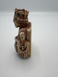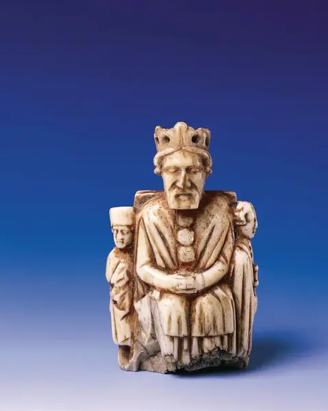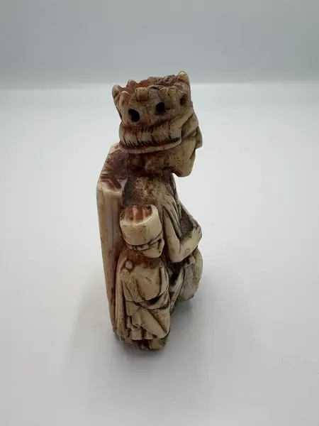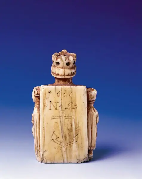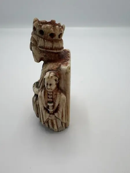 Schackpjäsen är 10 cm hög och föreställer en sittande kung omgiven av två små figurer. Den är tillverkad av ben (valrosstand?) och har spår av röd bemålning. På baksidan finns inskurna två initialer »N S», årtalet »1606» samt ett ankare. Hur länge den varit i skomakarnas ägo är obekant. En anteckning i museets inventariebok meddelar, att pjäsen av Johnny Roosval och Carl R af Ugglas daterats till 1300-talet.