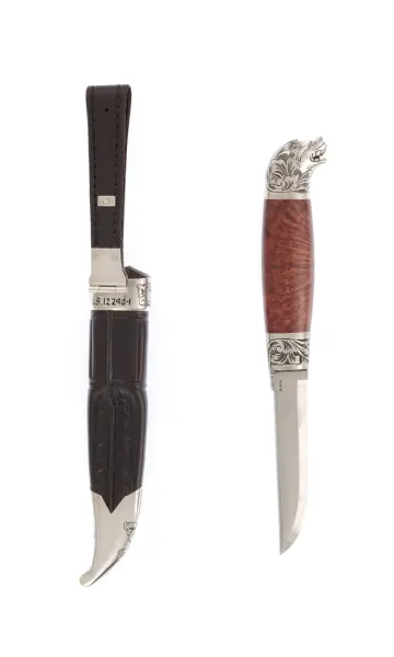 - Kniven kjøpt inn til LB-samlinga av lokalstyret.Seljar Knut Dag Myhrvold, Sandefjord – som også kniven vart laga på bestilling til. Solbjør reknar dette som den beste graveringa han har gjort.