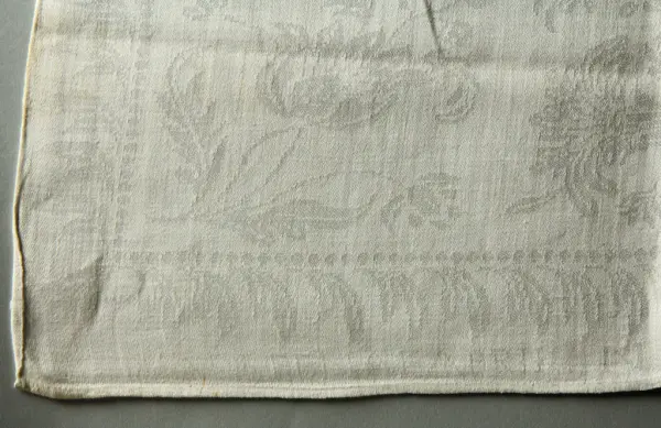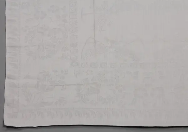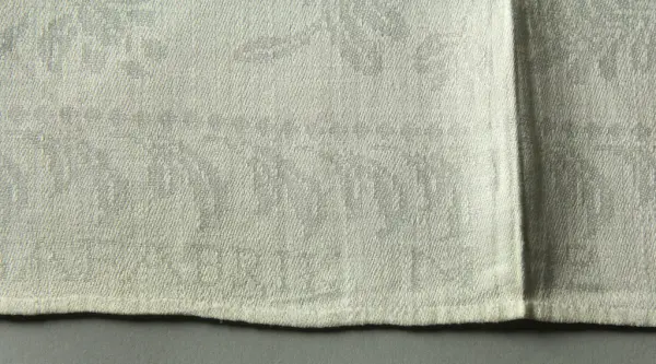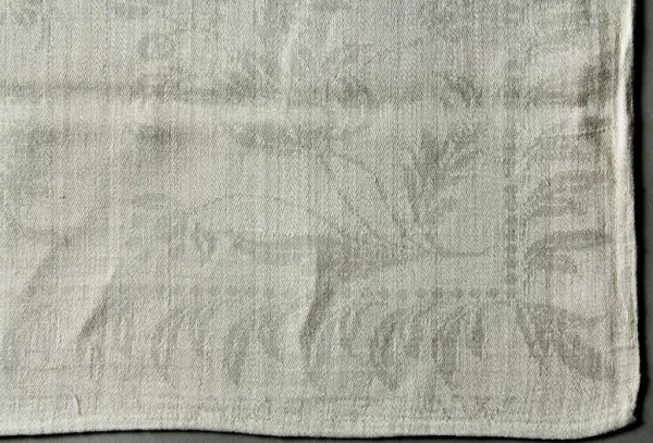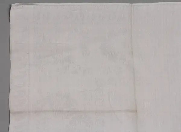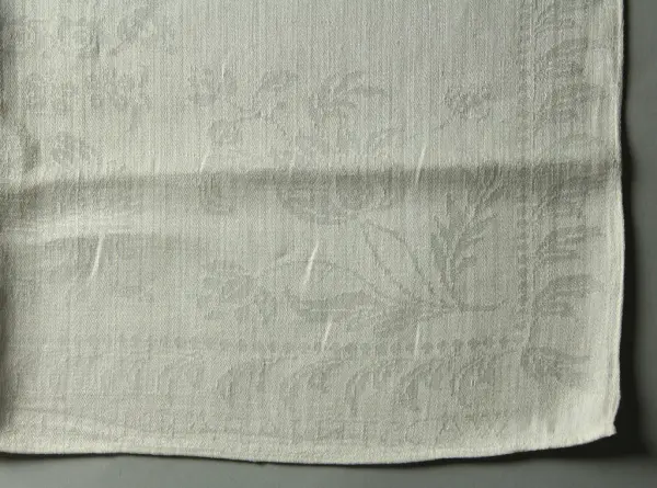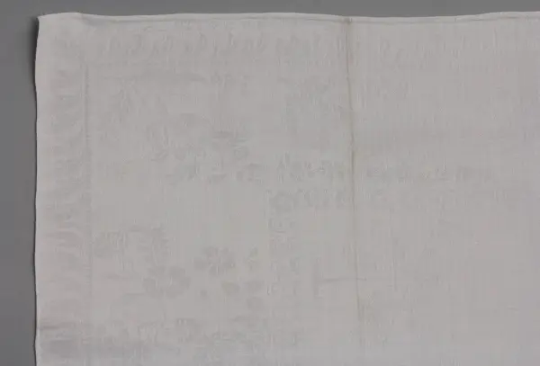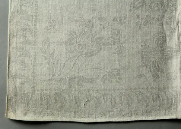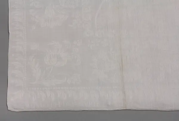 Uppsättningen med duk (se NM.0334731)och servetter, 12., vårdades, bevarades och ärvdes i rakt nedstigande led av Beate Helene Améens dotter: