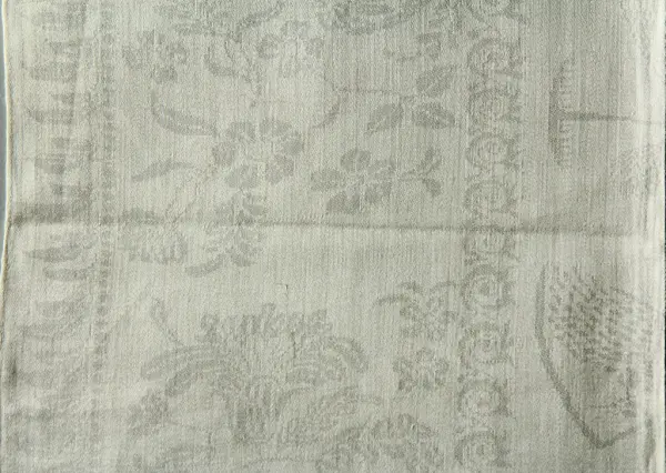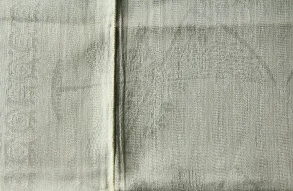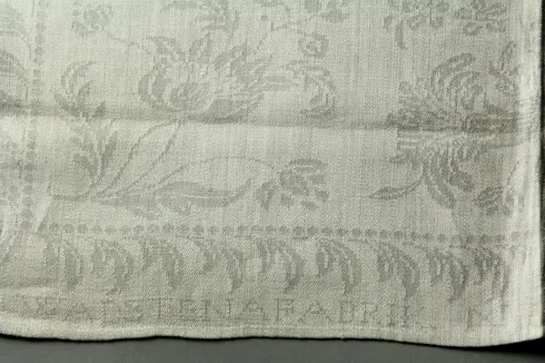Linet som uppsättningen vävdes av vid beställningen på Wadstena Fabrik var berett och spunnet av Beate Helene Améens mormor Helena Catharina Grewesmühl, née Kähler.