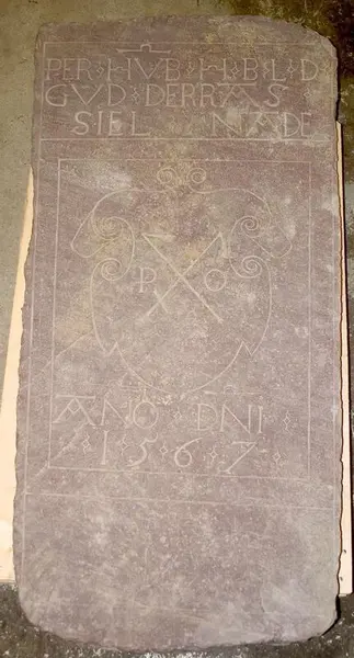 Gravhällen påträffades i samband med arkeologiska undersökningar åren 1965 - 1967 i S:t Pers kyrka, kvarteret S:t Per, Uppsala. Den var placerad mitt i långhuset, liksom gravhäll UM27897. Bredvid gravhällarna låg en grav av tegelsten. Att begravningar ägt rum där så sent (1567 och 1581) är inte dokumenterat på annat sätt. S:t Pers kyrka revs nämligen, samtidigt som Vårfrukyrkan och Franciskanklostret, efter stadsbranden på Uppsalas östra sida år 1543. En stor del av kyrkornas tegel återanvändes av Gustav Vasa vid byggnationen av Uppsala slott.