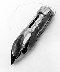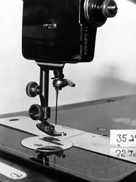 - Gåva av fru Ragna Johansson, Varberg. Ragna född 1898 i Andernos i Nordnorge, utvandrade till USA där hon gifte sig med snickaren Anders Johansson, bördig från Varbergstrakten. De återvände från USA 1938 och bosatte sig i Varberg. Anders Johansson död sedan ett drygt 10-tal år. Ragna flyttade hösten 1980 till Östergården från Granvägen 31 som var makarnas bostad sedan omkring 1960. Orsaken till att en handdriven maskin köptes var "att vi hade en sådan i mitt hem", enligt Ragna. Kvitto på köpet från 1941 finns bevarat.