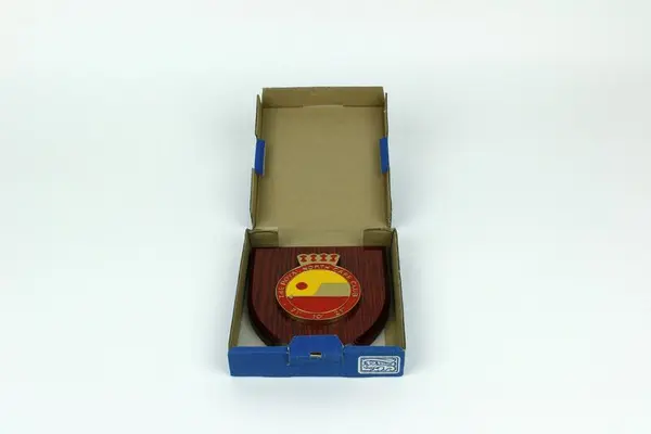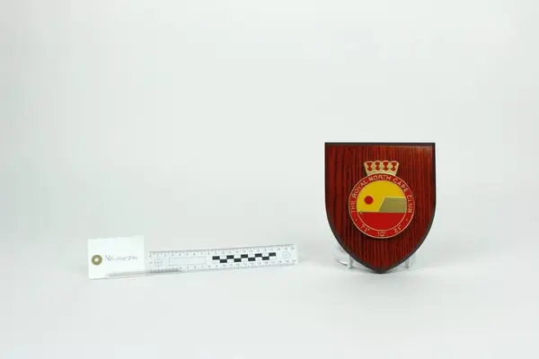 Våpenskjoldet er produsert av det britiske firmaet GK Beaulah & Co LTD. firmaet har produsert og designet veggplaketter, våpenskjold og heraldikk for store deler av verden. Firmaet ble opprettet på 1930- tallet.