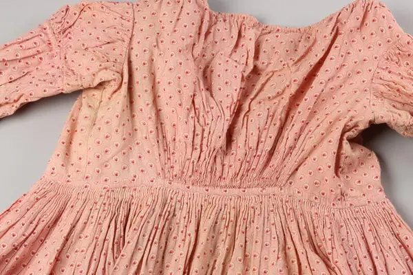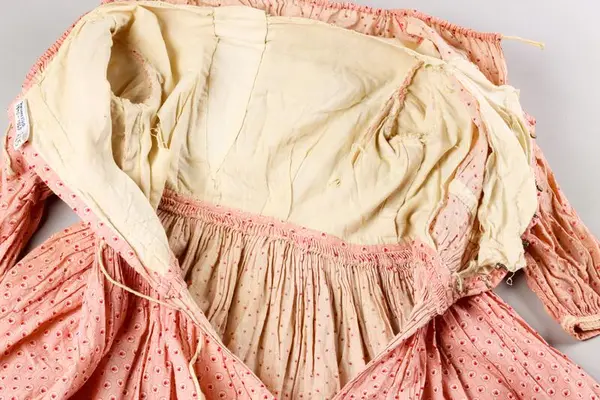 - Barnklänning uppsakattningsvis tillverkad någon gång mellan 1840-1860. Gåva från Marianne Wijkmark. Har tillhört kyrkoherdefrun Maria Larsson, född Chackville från Linköping. Maria Larsson var gift med kyrkoherde C V Larsson, Kungsholmens församling i Stockholm. Klänningen är äldre än Maria Larsson och måste ha ärvts av henne. Den har troligen också tillhört hennes fyra döttrar efter hennes död.
