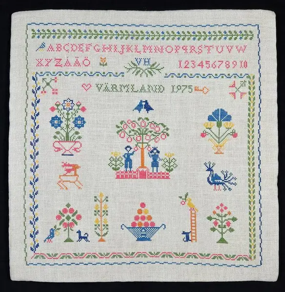 - Mönstret kommer från häftet "Korssömsbroderier från Värmlands Hemslöjd", utgivet under 1930-talet. Mönstret togs upp igen för försäljning i färdiga materialsatser under 1970-talet på initiativ av Agneta Hvengård.
