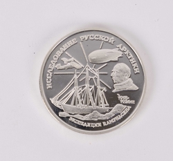 - Tekst på sertifikat: Roald Amundsen (1872-1928). Da Roald Amundsen 14. desember 1911 kunne plante det norske flagget på Sydpolen, var dette en seier som ga ham stor berømmelse. Seieren viste seg etter hvert nyttig for å få støtte til det som interesserte Amundsen aller mest, nemlig en utforskning av de ukjente deler av Arktis. Straks etter hjemkomsten fra Antarktis begynte han derfor planleggingen av en nordpolekspedisjon, og i juni 1918 seilte så MAUD ut fra Oslo. Ferden gikk inn i Barentshavet og videre østover langs den russiske ishavskyst. Vanskelig is- og strømforhold førte imidlertid til at de frøs fast flere steder. Etter flere år og mange stopp, endte det med at MAUD drev med isen utenfor det nordøstlige Sibir i tre år. Selv om de ikke nådde sitt geografiske mål, blir MAUD-ekspedisjonen regnet som en av de viktigste forskningsferder i Arktis gjennom tidene. Amundsen forstod etter ferden med MAUD at en utforsking av Arktis måtte skje ved hjelp av luftfartøyer. Med flybåtene "N 24" og "N 25" fløy Amundsen nordover fra Ny-Ålesund 21. mai 1925. Allerede neste dag fikk N 24 motorfeil og begge fly måtte gå ned ved en råk. Etter å ha kjempet om livet i nesten tre uker, nådde de Nordaustlandet med N 25. Med luftskipet NORGE fløy Amundsen-Ellsworth-Larsen-Mobile 11. mai 1926 fra Ny-Ålesund og over Nordpolen. Etter en luftferd på 72 timer landet de ved Teller i Alaska. Til tross for dårlig sikt på amerikansk side av Nordpolen kunne Amundsen faststå at det ikke fantes noe større landområde der. Den siste store, hvite flekk på verdenskartet var fjernet og Amundsen hadde nådd sitt siste, store mål.