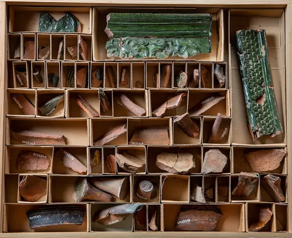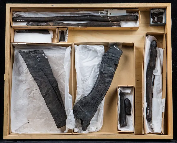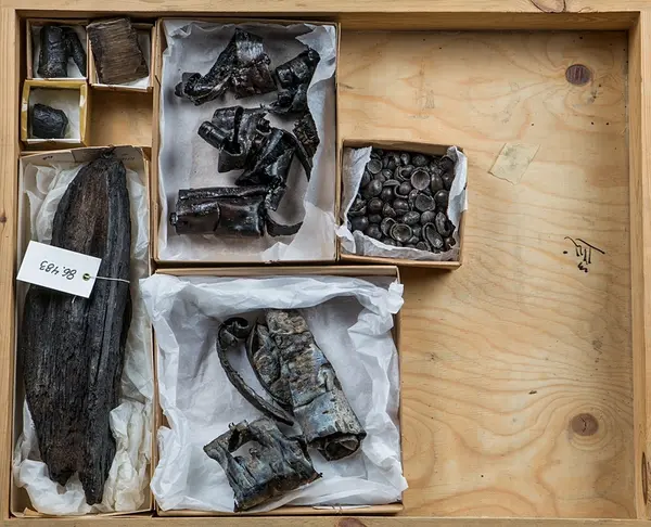 Flera brunnar och vattenreservoarer påträffades. Dessa var vanligtvis träskodda och välbevarade. Det var också i dessa som fynd av läder och trä påträffades.