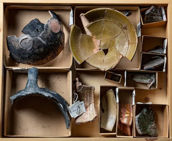 De äldsta lämningarna som påträffades vid undersökningarna var hägnader av flätverk och avfallsgropar.
