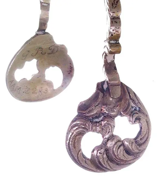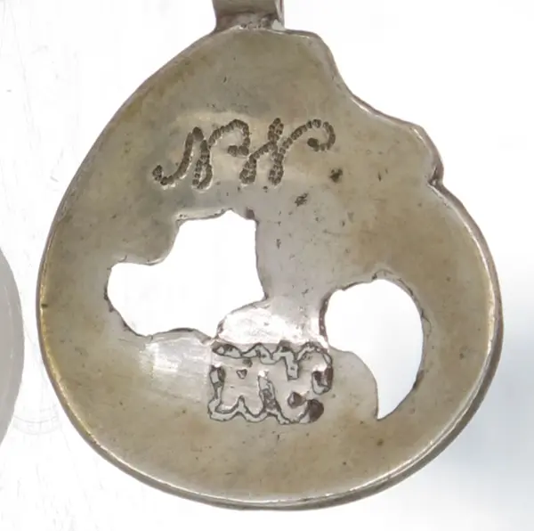 Stempel: AM i svunget felt. Anthony Gynther Henriksen, gullsmed i Arendal, født 1737.- Produsent (K)Henriksen, Anthony Gynther