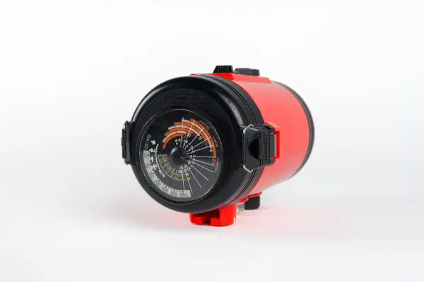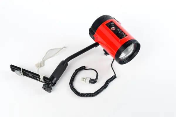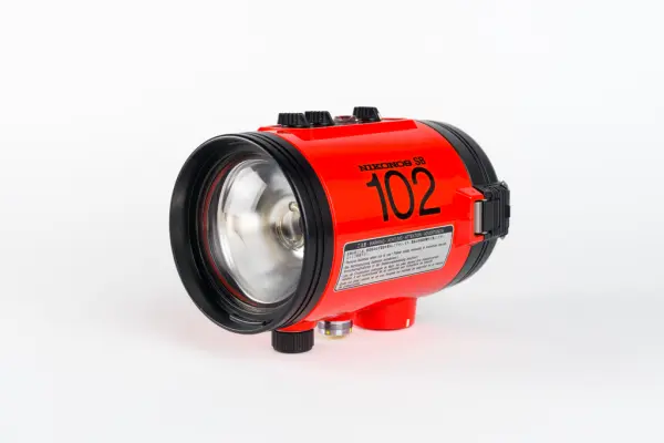 Blixt med tillbehör för undervattensfotografering. Tillverkad av Nikon. Använd på minröjningsfartyget HMS Kullen under 1980-talet.