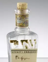 - Enligt uppgift från givaren, skall hennes far Folke Samuelsson ha inhandlat parfymen under 1940-50-talet. Flaska är dock äldre, men då etiketten är bortskrapad och ersatt med en "ny", har flaskan återanvänts.