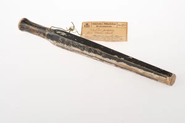 - Märkt med pappersetikett med nummer 595 som återfinns i katalog över Museet i Stjernsfors: "Godkända luffare hade sina initialer på denna. När de komma till herrgården (eller kontoret) fingo de mat. Andra luffare fingo gå värdshus förbi och fingo intet". Pappersetikett med text "Luffarpinne från Storfors bruk".