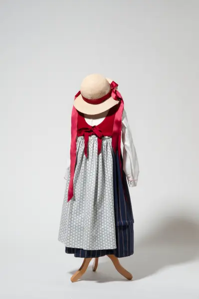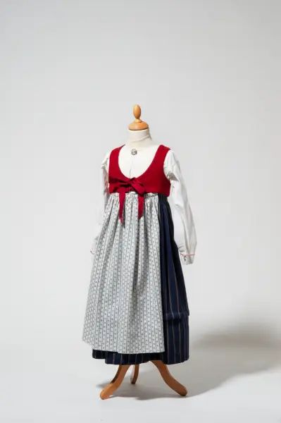 Museumshåndverkerne på Veveriet på Norsk Folkemuseum utviklet Akerdrakten på slutten av 1900-tallet. Bakgrunnsmaterialet var prøver på stakke- og vestestoffer som vi fant i Aker Sogne-Selskaps Prøveprotokoll fra 1808-10. Hjelp til å utforme modellene i empiresnitt fikk vi fra Dansk Tekstilhistorisk Forening.