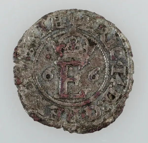 - Monogram, initialer, vapensköld, påskriftErik XIV, kung av Sverigesäker