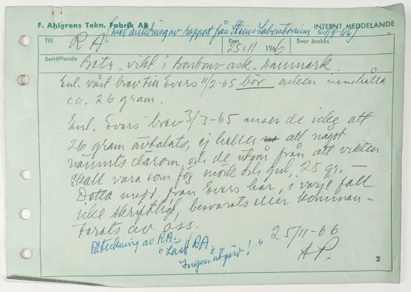 - Föremålet kommer från Ahlgrens Tekniska Fabrik i Gävle i samband med en donation av MalacoLeaf AB 2002.