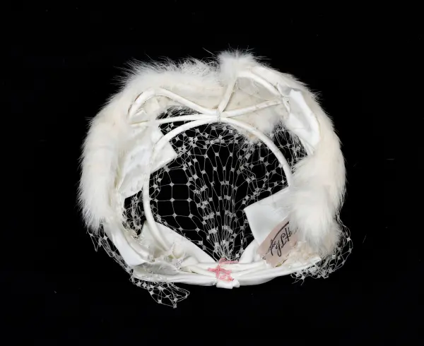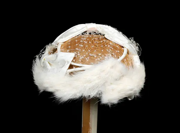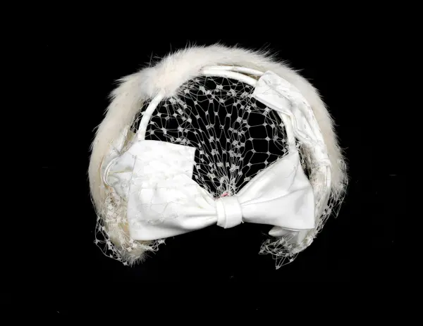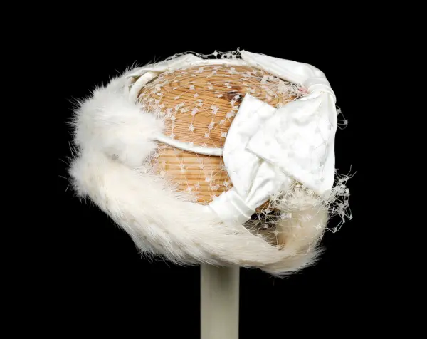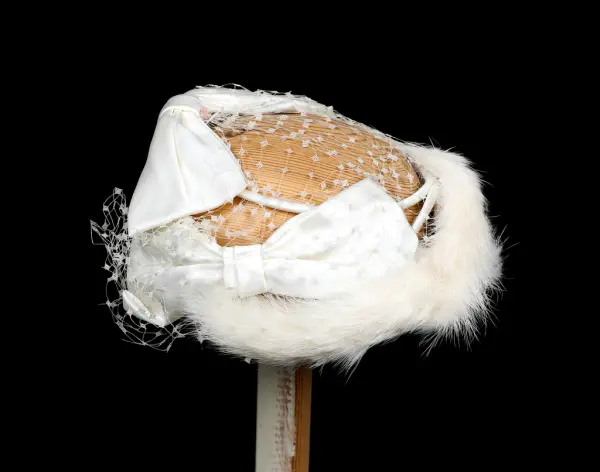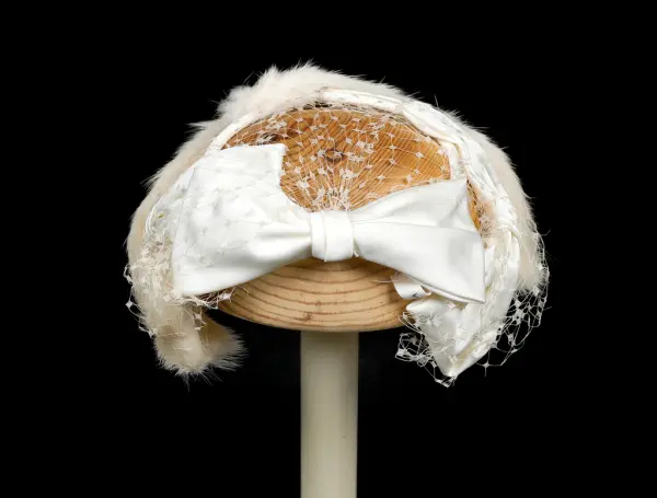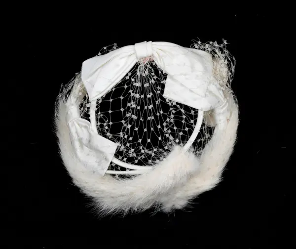 - Relaterte objekterGM.035777 kjole GM.036452 01 og 02 hatt med slør GM.036453 01 og 02 hansker GM.036455 01 og 02 hansker