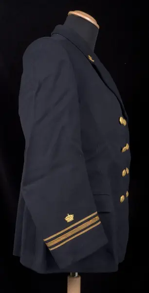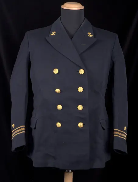 Kavajen utgör tillsammans med väst (VMF044889) del av en lotsuniform. Resterande delar av uniformen saknas.
