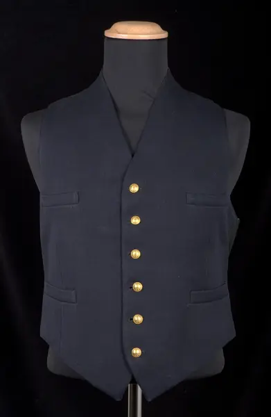 Västen utgör tillsammans med kavaj (VMF044888) del av en lotsuniform. Resterande delar av uniformen saknas.