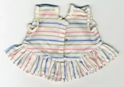 Ann-Sofie minns: Den lilla dockan fick jag troligen i 3-årsåldern. Jag tyckte att hon var så söt. Hon har ett litet hål i munnen där hon fick dricka vatten ur en liten nappflaska, det var roligt för det rann ut eftersom hon hade ett hål i stjärten. Hon har även fått bada en hel del därför har ögonen förlorat lite av sin färg. Jag har även klippt håret på henne jag trodde att det växte ut igen. Det är inte så mycket klippt för det är en docka som är köpt med kort hårt. Vid ett tillfälle passad jag på att Klippa bort ett lillfinger. Mamma har sytt alla kläderna till henne. Det finns även fyra små galgar till dockkläderna. Docksängen. Har mormors man tillverkat (inte min morfar, honom har jag aldrig träffat). Mormor sydde madrassen och stickade täcket samt ett litet örngott och överlakan till. Troligen var året 1962. Överlakan följde inte med i gåvan.