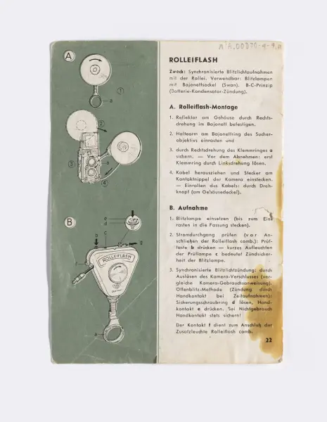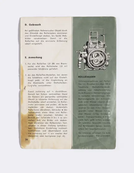 Bruk: 1959 (Brukermanualen er for kameramodellen Tele-Rolleiflex, som først ble produsert i 1959.)