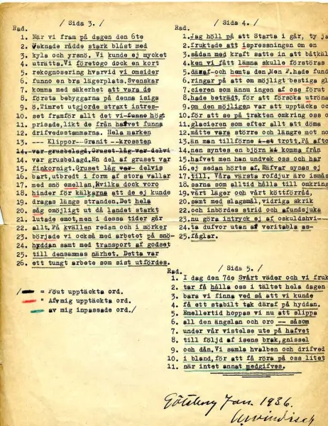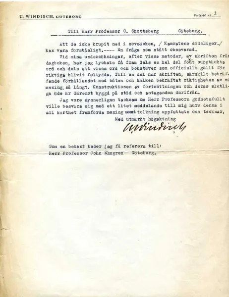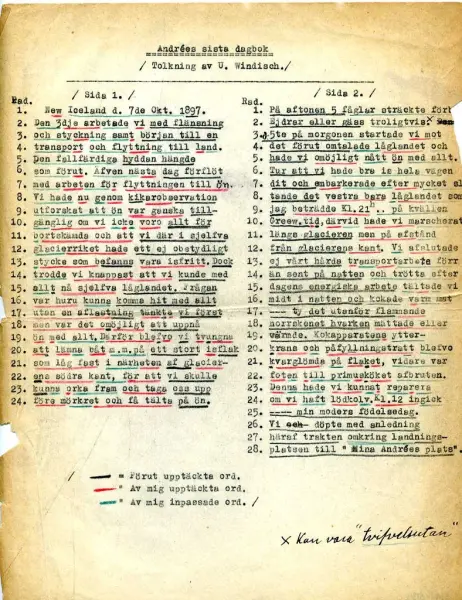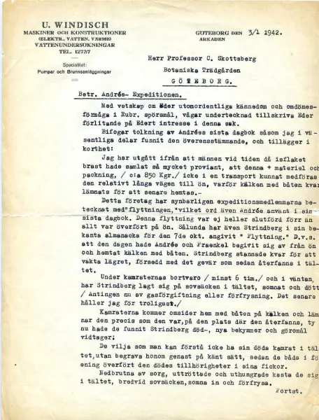 - Windisch brev till Skottsberg med bilaga av den förres tolkningar av Andrées andra dagbok.