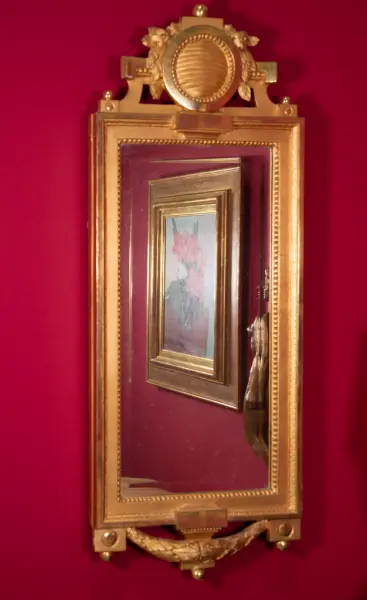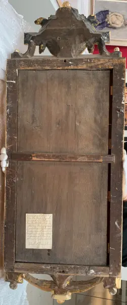 Enligt papper satt på spegeln ska den tidigare ha tillhört Givarens avlide farbror Anders Danielsson i Bjelmerud i Grums. Enligt honom så ska spegeln vara 300 år gammal. Farbrorn ska ha varit 90 år när han dog.