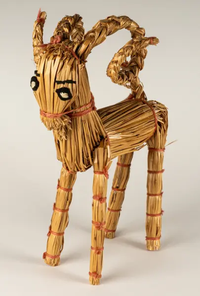 Halmbock/julbock tillverkade av Olga Forsling, ogift Westlin, från Oppala/Mackmyra (samt dottern Margot Anderssons dotter Ingegerd.