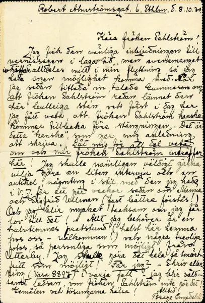 Robert Almströmsgat. 6. Sthlm. d.8.10.30
