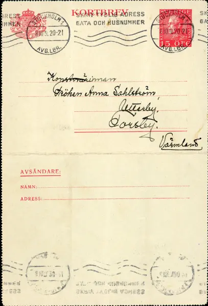 - Part of collection Sahlströms brevsamling