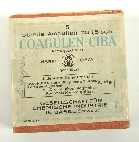 Blödningshämmande läkemedel som har använts för att minska kraftiga blödningar i samband med förlossningar och har använts av barnmorskan Martina Karlsson (f.Kristensson) 1875-1945.