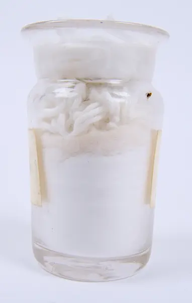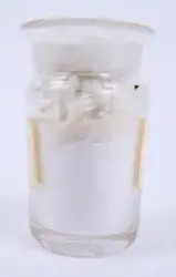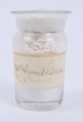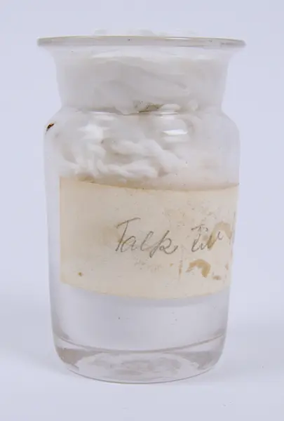 Glasburk innehållande Talk som troligen har använts av barnmorskan Martina Karlsson (f.Kristensson) 1875-1945.