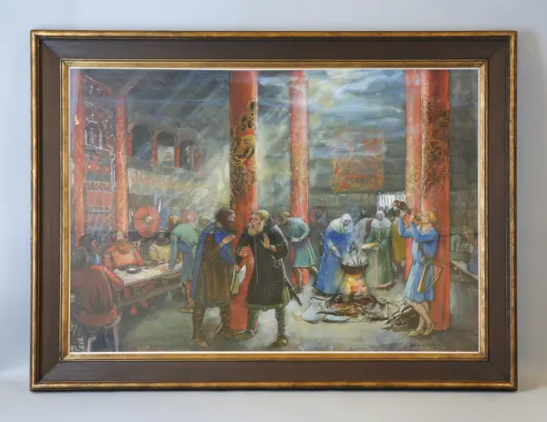 Konstnären Olle Hjortzberg (1872-1959) var en svensk målare, illustratör och grafiker. Lärare vid Konsthögsolan 1909, professor 1922 och direktör 1920. Han har utfört ett flertal målningar som underlag för skolplanscher.