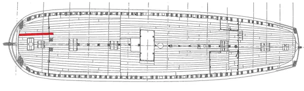 I Vasa, Trossdäck, balk 00-05, styrbord- FyndplatsI Vasa, Trossdäck, balk 00-01, styrbord