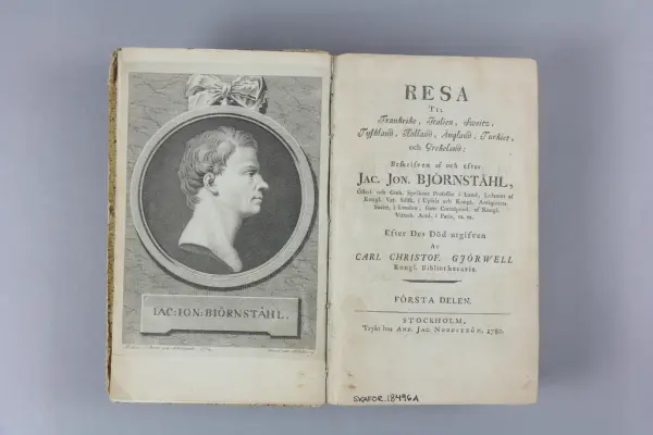- Bokband tryckt i Sverige, 1700-tal. Inköpt på antikvariat. Införlivad i samlingarna.