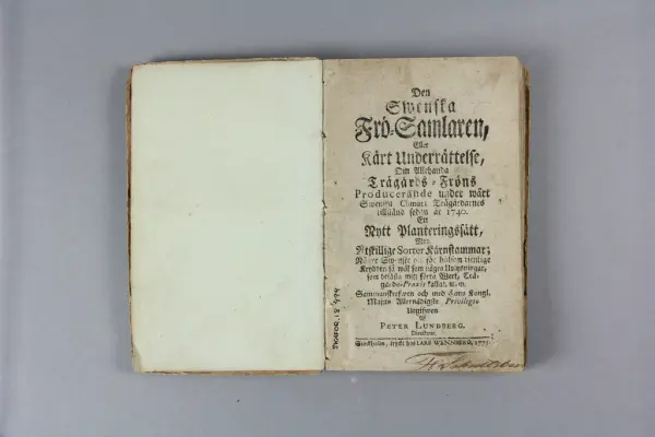 - Bok tryckt i Sverige, 1700-tal. Inköpt på antikvariat. Införlivad i samlingarna 2019-06-04.